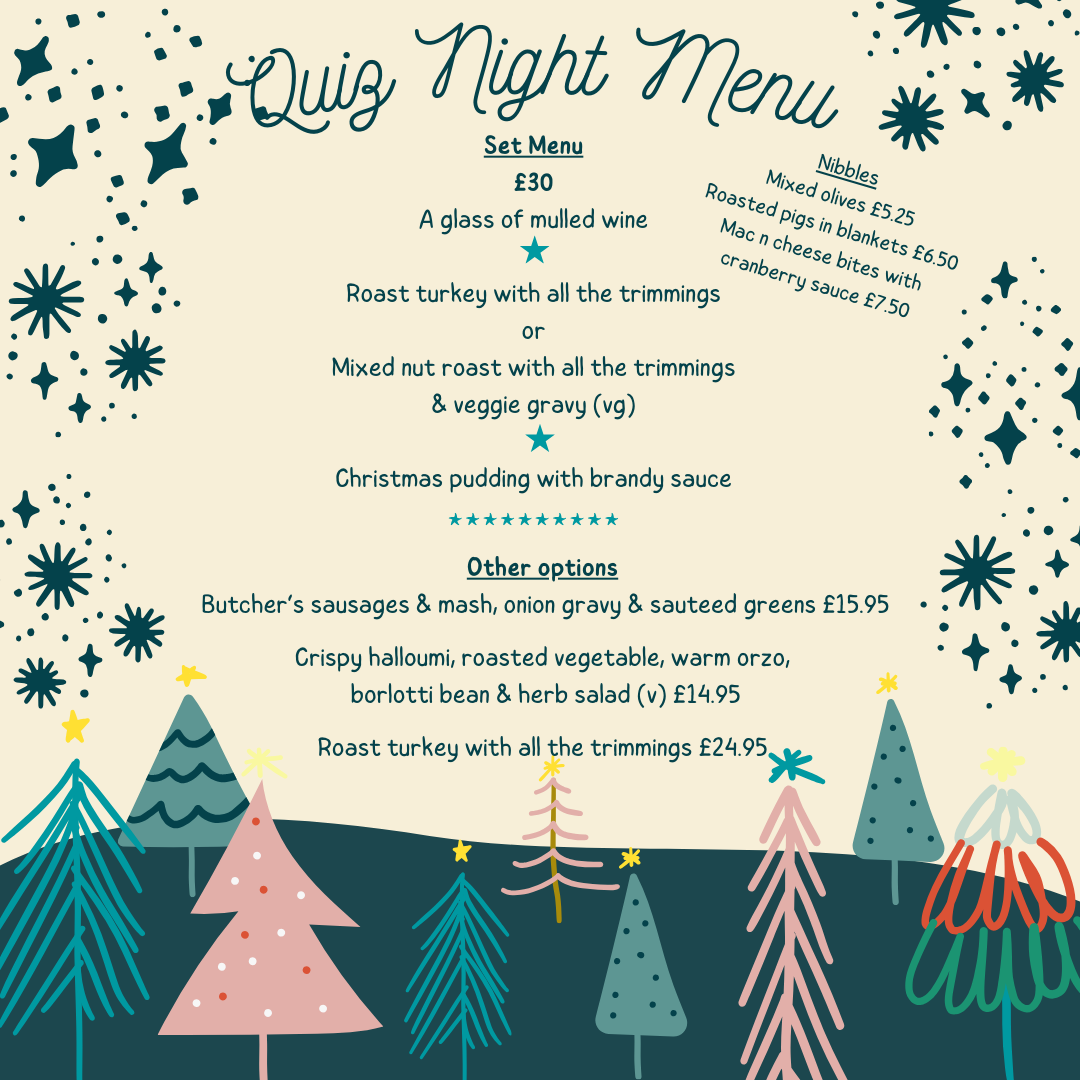 A fantastic festive quiz for teams of up to six, with roast turkey, Christmas pudding and mulled wine on the menu.