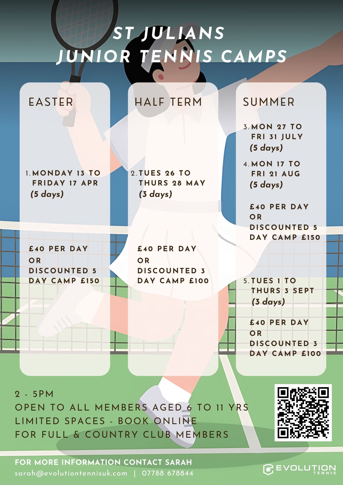 Any questions email sarah@evolutiontennisuk.com